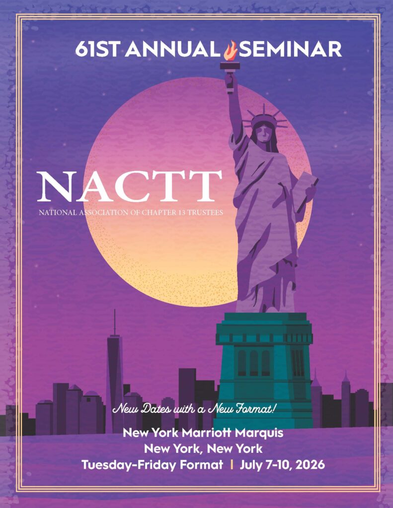 This year’s agenda includes sessions on consumer tax issues affecting debtors, national creditor concerns, claims litigation, and generational bankruptcy challenges — plus much more. If you’ve ever wondered whether a trustee-sponsored conference could elevate your practice, the answer is a definite yes. Step outside your routine and discover what you’ve been missing.